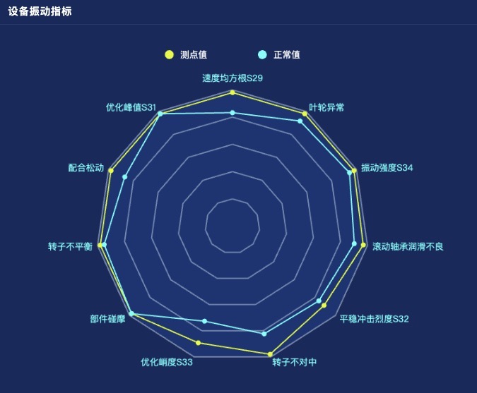 通过大数据模型和AI算法,对采集到的数据进行故障分析和判定,并可以雷达图的方式展示其健康指标。