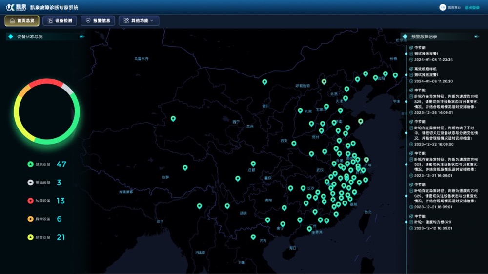 通过首页总览,用户可以清晰的了解设备的地图分布、在线情况、健康指标、报警记录。